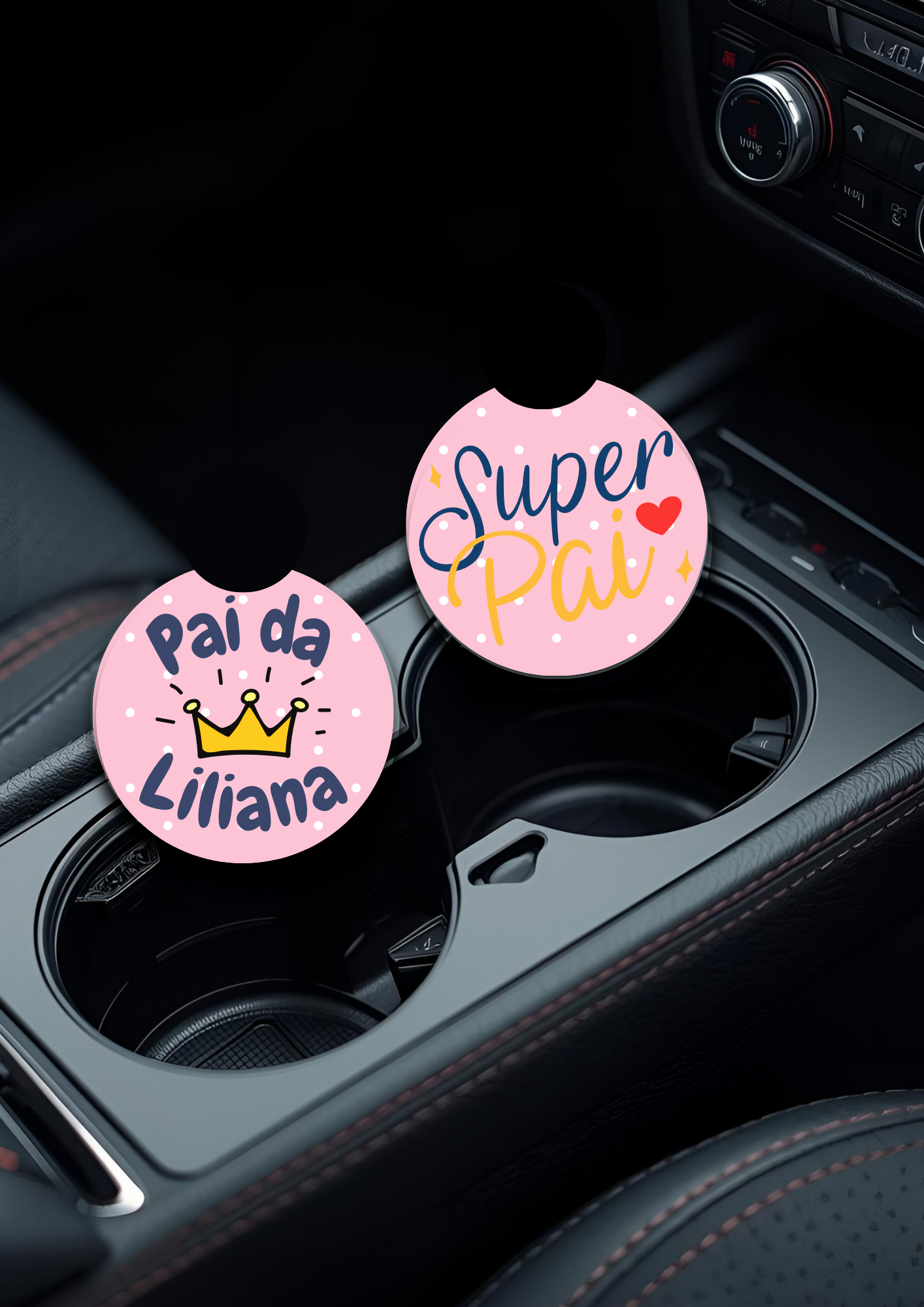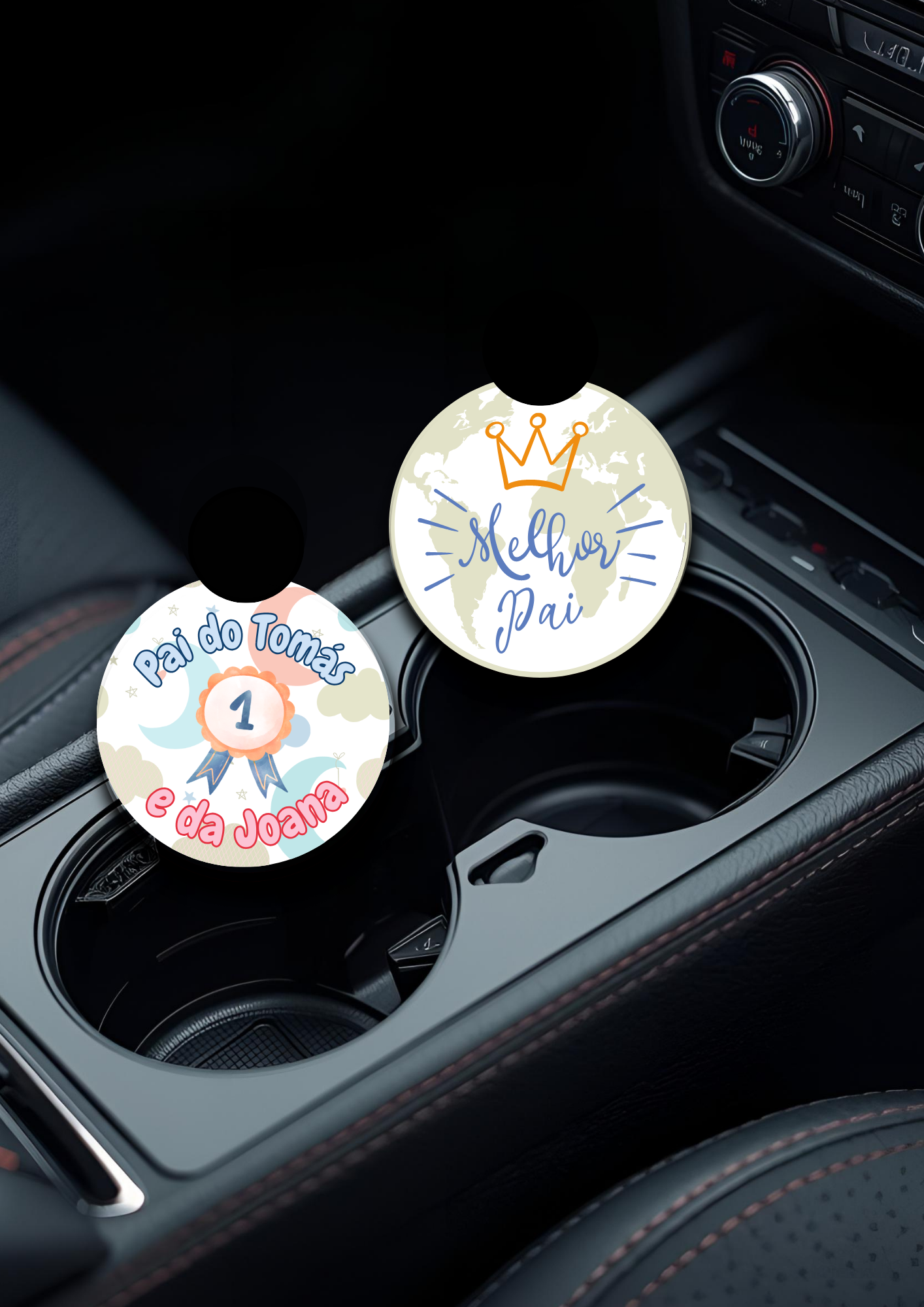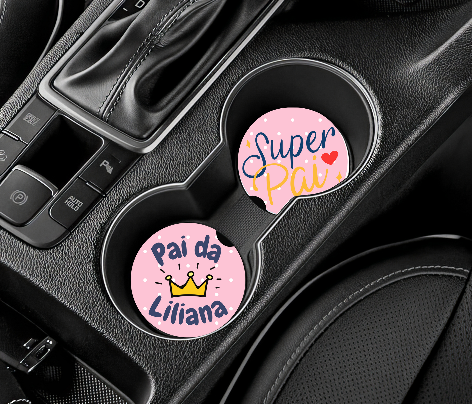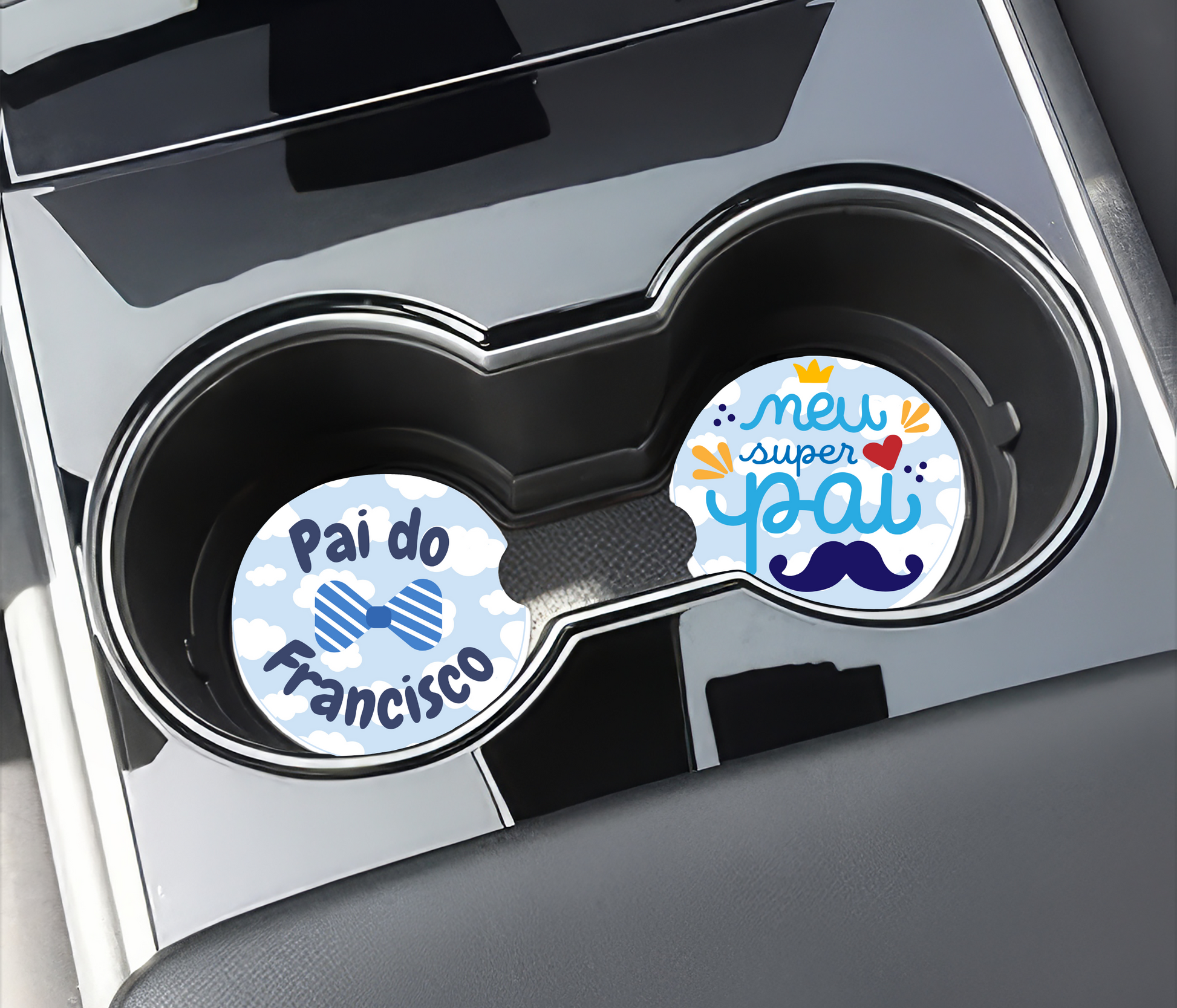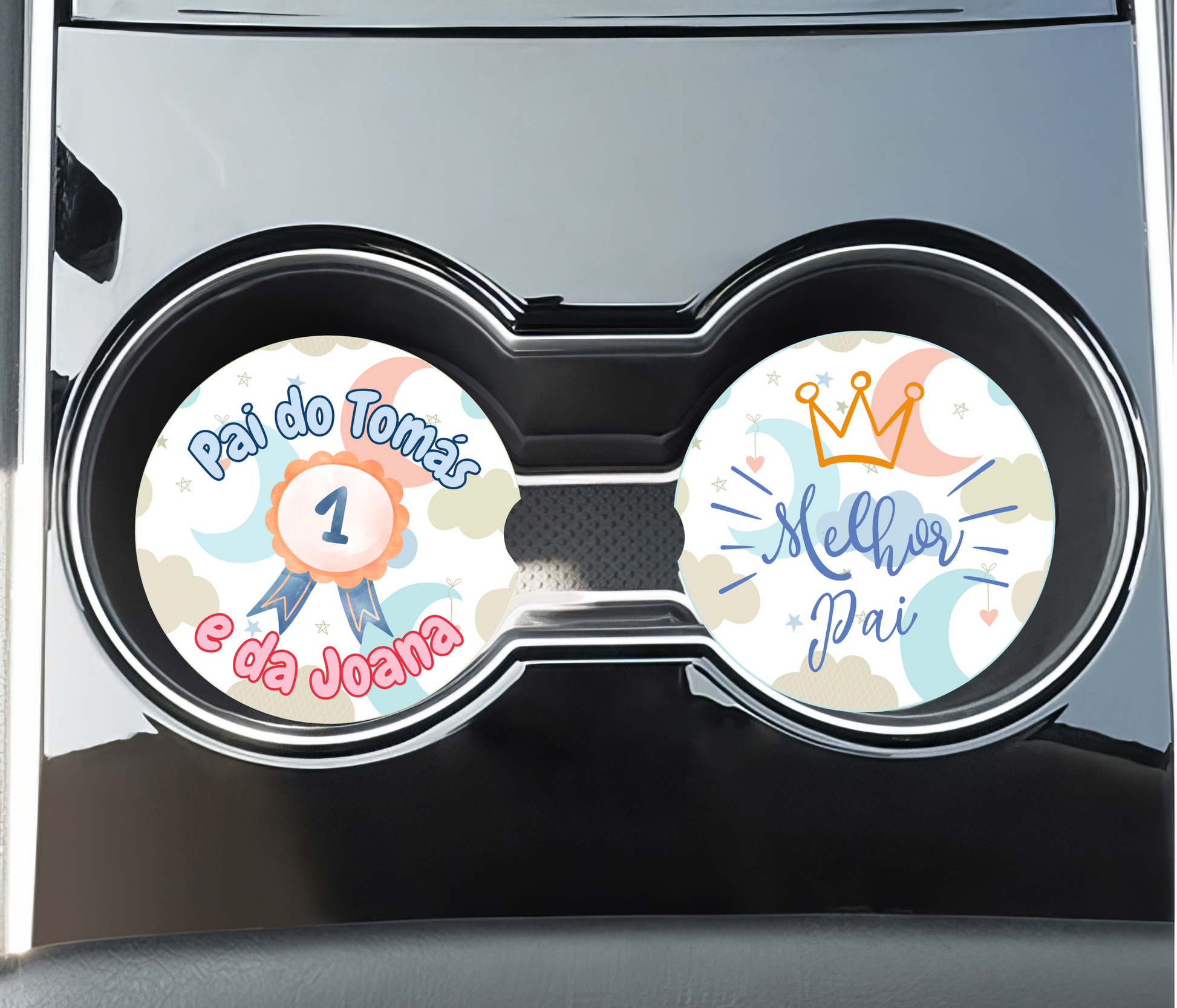 As nossas bases de copos para carro personalizadas trazem os nomes dos filhos gravados, transformando um acessório prático numa lembrança única.