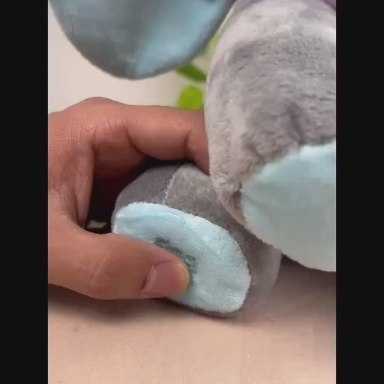 Disponível em cinza e rosa, ou cinza e azul, este elefante de 25 cm é a lembrança perfeita para cerianças pequenas.