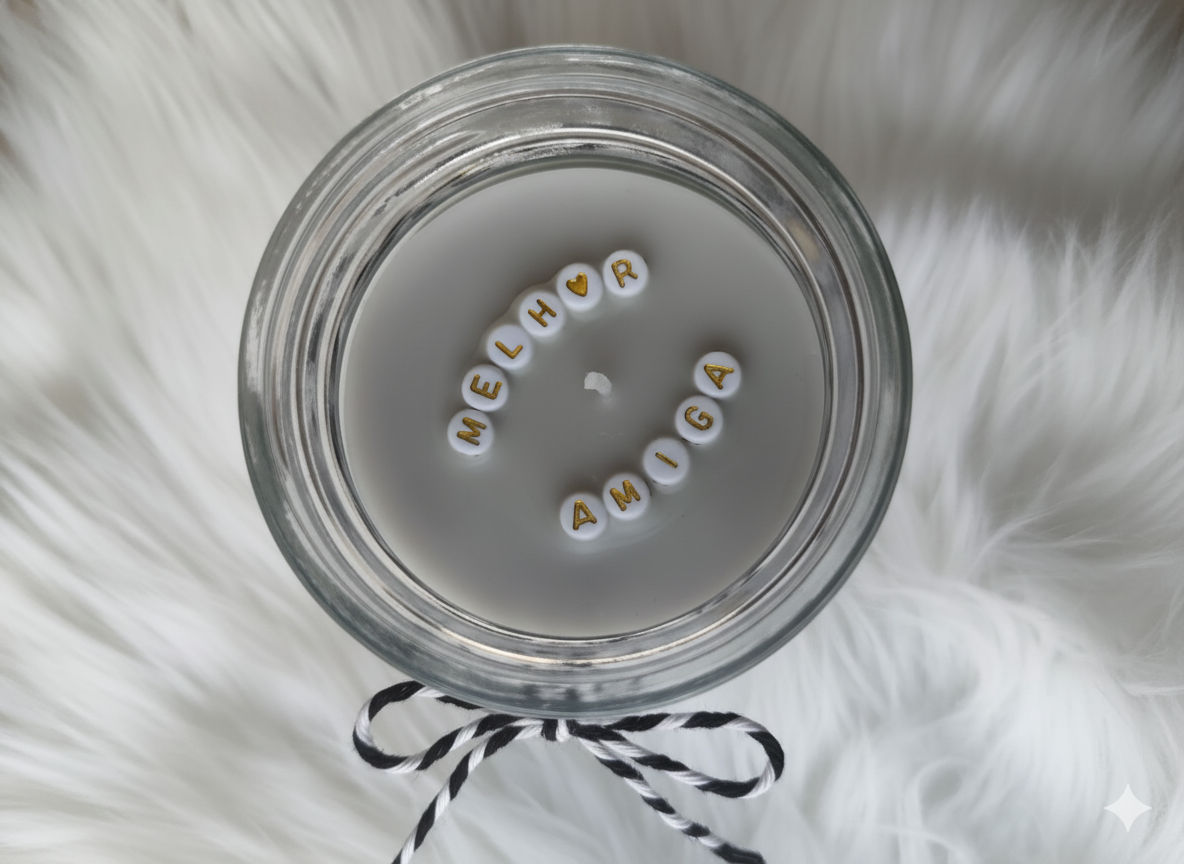 Estas velas personalizadas são criadas à mão e decoradas com pequenas letras douradas que formam palavras, nomes ou frases com significado — perfeitas para oferecer ou iluminar o teu próprio espaço com amor e intenção.